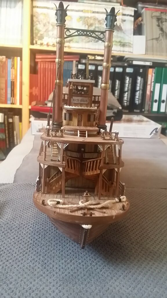Our model has the stern deck is openable, that is, when we remove the support arches for the cables from their anchoring places, we can ‘disengage’ a part of the stern deck, access the interior of the hull to be able to work comfortably and, later, refit these parts without noticing anything unusual.