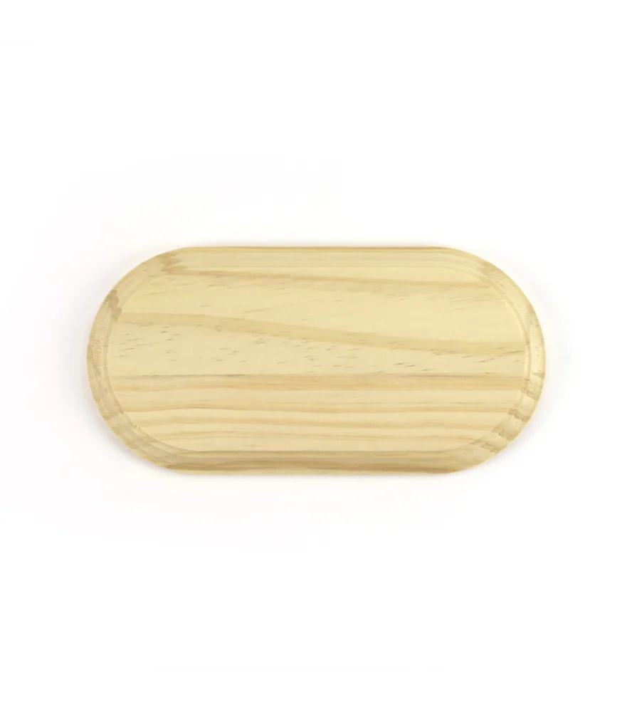 Denne ovale fyrretræsbase måler 220 mm i længden og 110 mm i bredden. Basen er lavet af massivt træ, så dens fasthed og lange levetid er sikret.