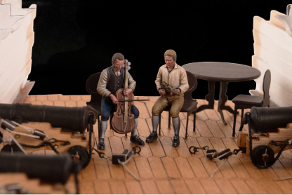 Delight in the captivating performance of Captain Aubrey and Stephen Maturin as they play La Boccherini’s timeless melody in the captain’s quarters of HMS Surprise.