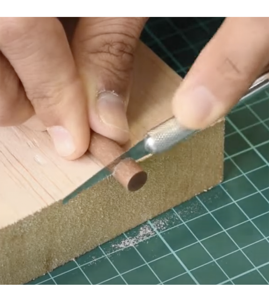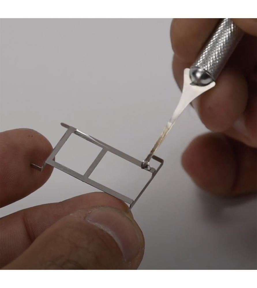 Met de kraspen kun je aan de ene kant de lijnen van de verschillende stukken markeren die eerder op het model zijn gemarkeerd; aan de andere kant kun je met de lijmapplicators het meest precieze werk doen.