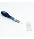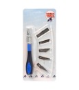 Snijder Nr. 5 met ergonomisch handvat en zes bladen - vijf verschillende - voor taken met betrekking tot het snijden van modelonderdelen of andere kleine voorwerpen. Dit gereedschap voor modelbouw of andere ambachten zoals papier, karton, plastic en elektrisch werk dient het volgende doel: het vergemakkelijkt het snijden met absolute precisie en comfort. De snijder is gemaakt van hoogwaardig metaal en versterkt plastic voor duurzaamheid en heeft een beschermkap om snijwonden te voorkomen als hij niet wordt gebruikt.