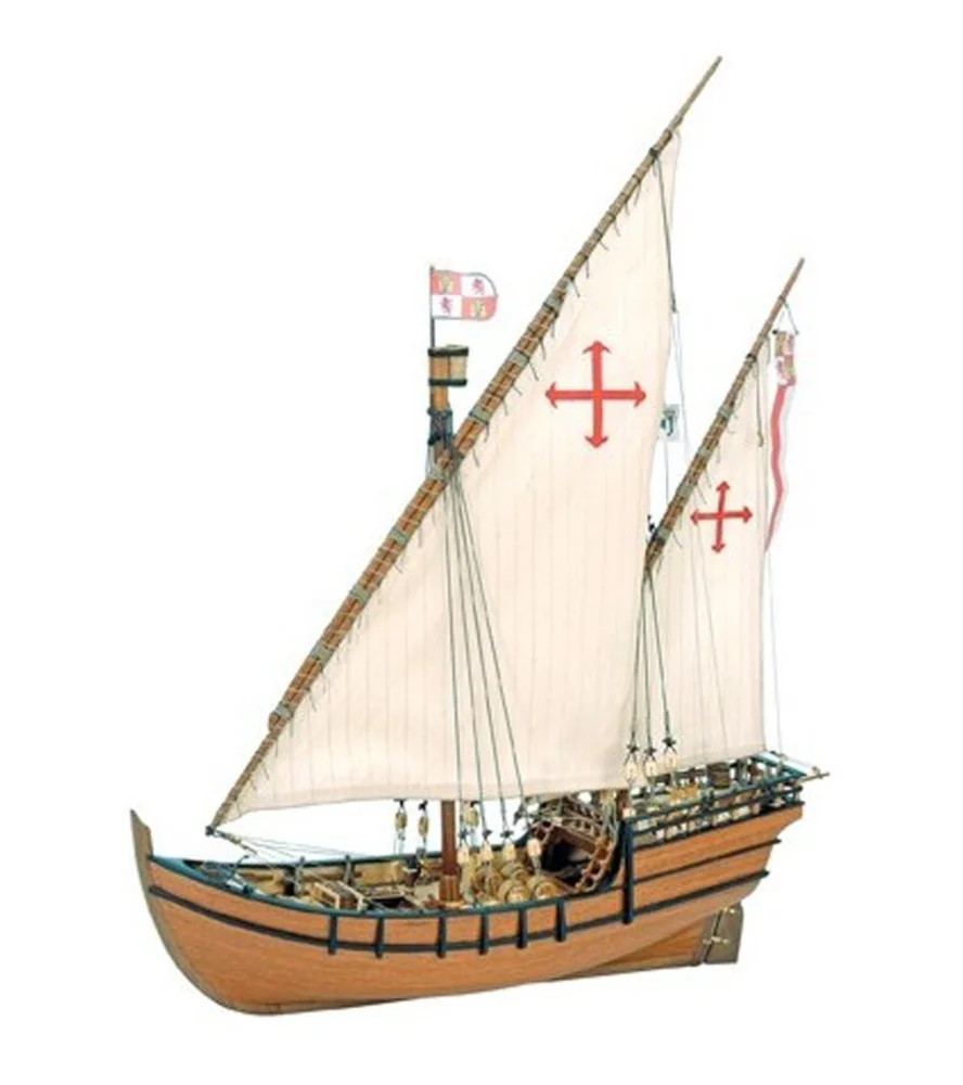 Byg dit La Niña træmodelskibssæt iskala 1:65, Discovery of America's caravel. Dets samlingssystem ved hjælp af falsk køl og spanter ligner designet på det rigtige skib. Når den er bygget, måler denne karavelle, som Amerika blev opdaget med, 415 mm i længden, 111 mm i bredden og 495 mm i højden.