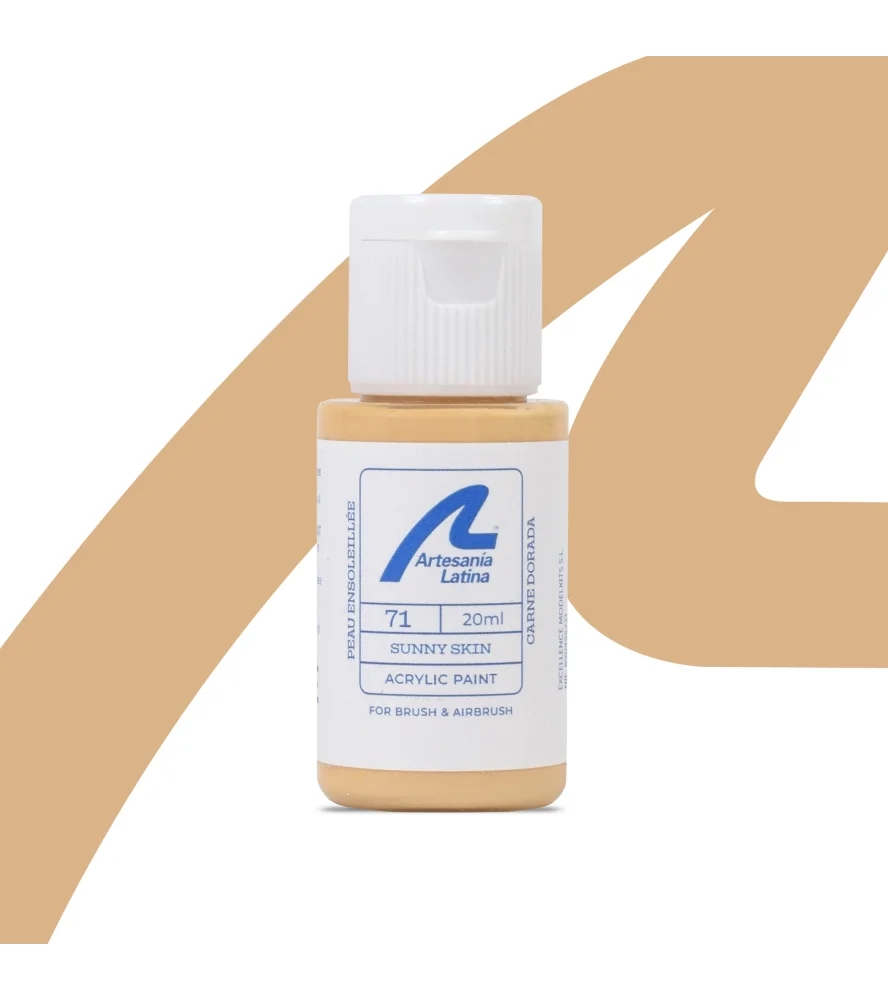 Flasken med vandbaseret maling i solrig hudfarve til pensel og airbrush, fremstillet af Artesania Latina, er det ideelle produkt, så finishen på dine modeller og kunsthåndværk bliver perfekt. Den indeholder 20 ml produkt og giver en halvmat finish. Den vandbaserede maling med solrig hudfarve er nem at påføre takket være den medfølgende kanyle. Tørringsprocessen er meget hurtig. Tilføj den til dit håndværks- og modelbygningsværksted, så skalamodeller og andre DIY-projekter kommer til at skinne, når de er bygget!