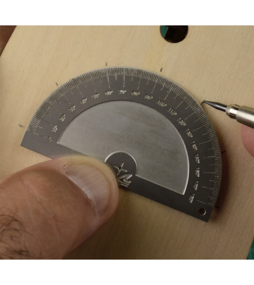 Der Winkel und die Schmiege, beide mit abgeschrägten Ecken zur Vermeidung von Klebstoff, sind sehr nützlich, wenn sie als Montagewinkel verwendet werden.