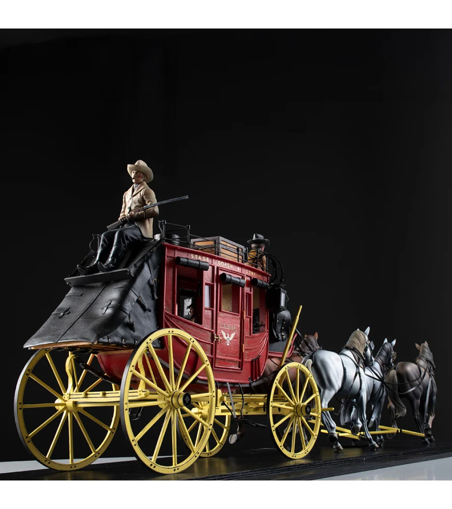 Crafted with premium materials, including European high-density resin for figurines and horses, Korean acrylic for optional showcases (sold separately), and Spanish-manufactured paints, this set ensures durability and historical accuracy. The Stage Coach kit features solid wood, brass, and leather for a true-to-life 1850s aesthetic.