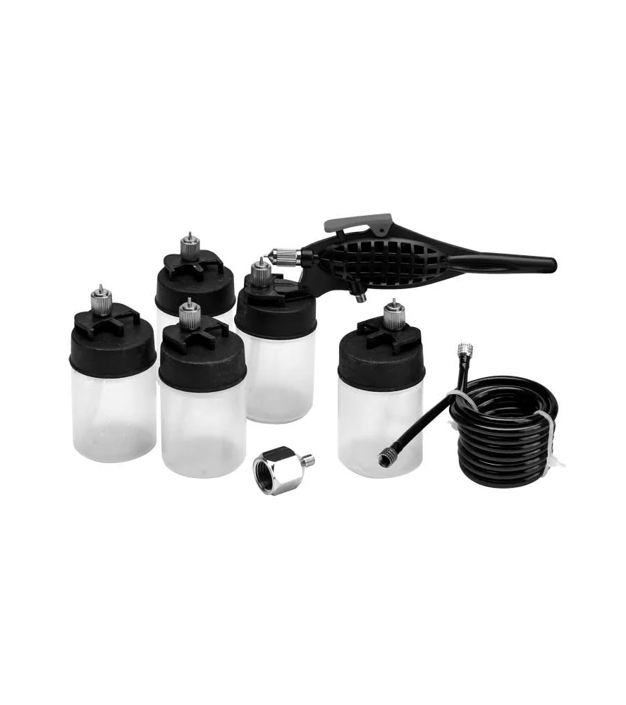 Om met de airbrushtechniek te schilderen en optimale resultaten te behalen, heb je een betrouwbaar gereedschap nodig zoals de single-action airbrush met vijf verfblikken, adapter en 1,5 meter slang van Artesanía Latina. Regel de luchtstroom met de hendel van deze zuigluchtpenseel.