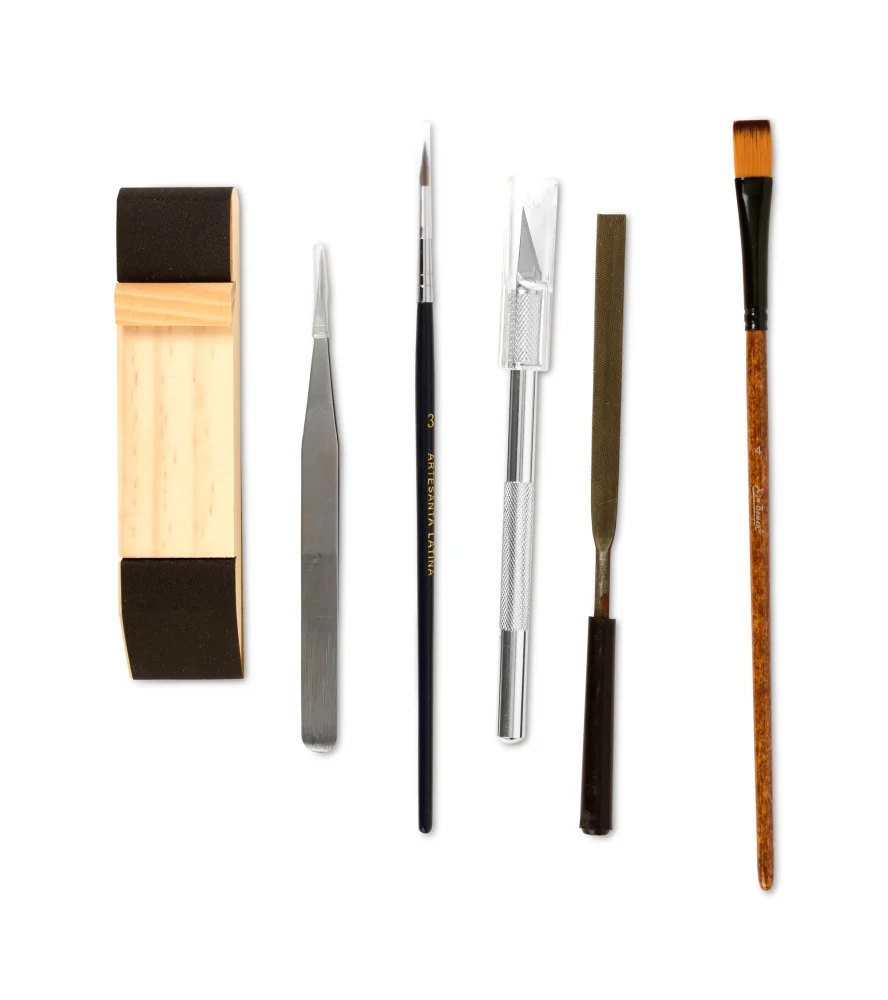 Shipping and customs fees are the responsibility of the customer and vary depending on the destination countrySada modelovacích nástrojů. Sada základního modelářského nářadí N2 přináší nástroje pro snadnou stavbu modelů lodí, letadel a vlaků: obsahuje řezačku n1, rovnou upevňovací pinzetu, brusnou hmoždinku, ploché a kulaté štětce a plochý pilník. Obsahuje některé z nástrojů, které by měl mít každý modelář v iniciační fázi.