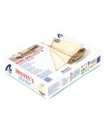 Stavebnice námořního modelu s modelem lodi obsahuje všechny potřebné díly pro sestavení věrné miniaturní repliky. Skládá se ze tří desek vyřezaných vysoce přesným laserem, aby bylo možné díly bez problémů vyjmout. Dvě z překližky (jedna o tloušťce 2 mm a jedna o tloušťce 3 mm) a jedna o tloušťce 3 mm z tvrdého dřeva. Dodává se také se sadou dřevěných lišt, dýh a kulatých tyčí, s příslušenstvím z tlakového odlitku, mosazi a dřeva a s jednou vlajkou, která má nový design. Přináší také velkolepou sadu ručně šitých bavlněných plachet připravených k umístění a bavlněné nitě. Jako bonus krásný dřevěný výstavní podstavec k sestavení se jmenovkou lodi.