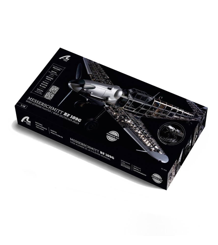 Model BF109G v měřítku 1:16, určený zasvěceným modelářům, má systém záložek, který umožňuje sestavení konstrukce téměř bez použití lepidla. Přesněji řečeno, kovové díly ke stavbě jsou z fotoleptaných nerezových plechů a vstřikovaných tlakových odlitků a plastů. Jedná se o velmi robustní, velký a pevný model letounu, připomínající stíhačku, která křižovala oblohu již ve 30. a 40. letech 20. století. Má také překvapivý motor s nízkými otáčkami, který zajišťuje pohyb vrtule. Po dokončení měří tato báječná miniatura 22,24'' na délku, 24,40'' na šířku a 8,07 na výšku, přičemž nesmíme zapomenout na její hmotnost 3,52 kg.
