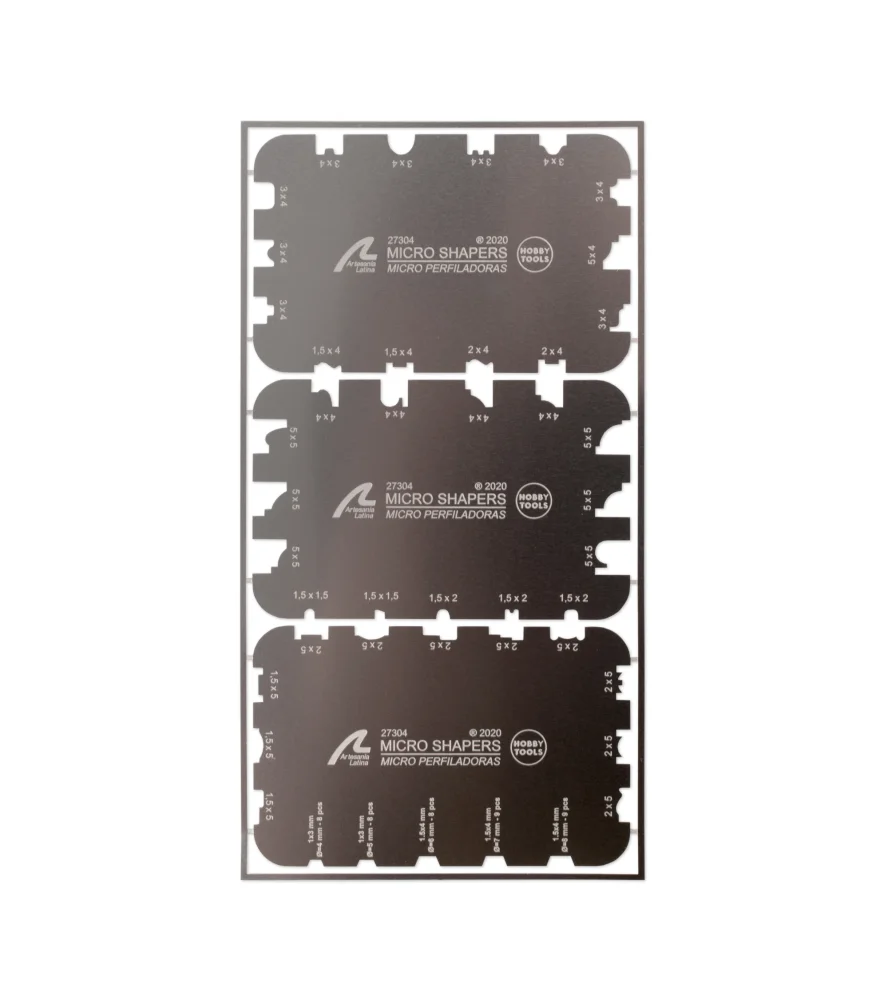 Tyto Micro Shapers C / Micro Moulding Scrapers C jsou ideálním nástrojem pro tvarování všech druhů dřevěných a plastových miniatur a modelů: lodí, budov, domečků pro panenky... 3 různé sady mikroformovacích škrabek (prodávají se samostatně A, B a C). Každá z nich má 3 destičky s 15/16 různými tvary na destičku. Patří do kolekce mikronářadí.