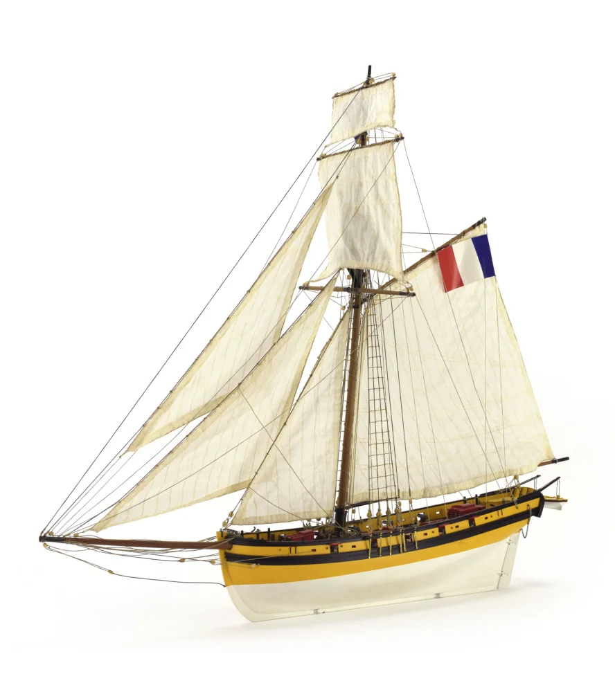 Byg din model i skala 1:50 af Le Renard, et kaperskib fra det 19. århundrede. Denne kutter er en grundlæggende del af flådemodellering , der har den officielle licens fra Association Cotre Corsaire de Saint-Malo. Dens samlingssystem ved hjælp af falsk køl og rammer om dens konstruktion til det rigtige skib.