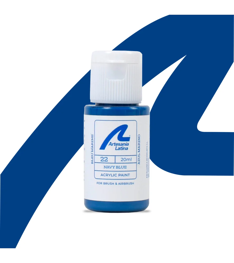 Marineblå akrylmaling til modeller og kunsthåndværk kan bruges til at male modelsættene på Artesanía Latina og til alle former for kunsthåndværk. De egner sig perfekt til brug med airbrush, men kan også bruges med pensel.
