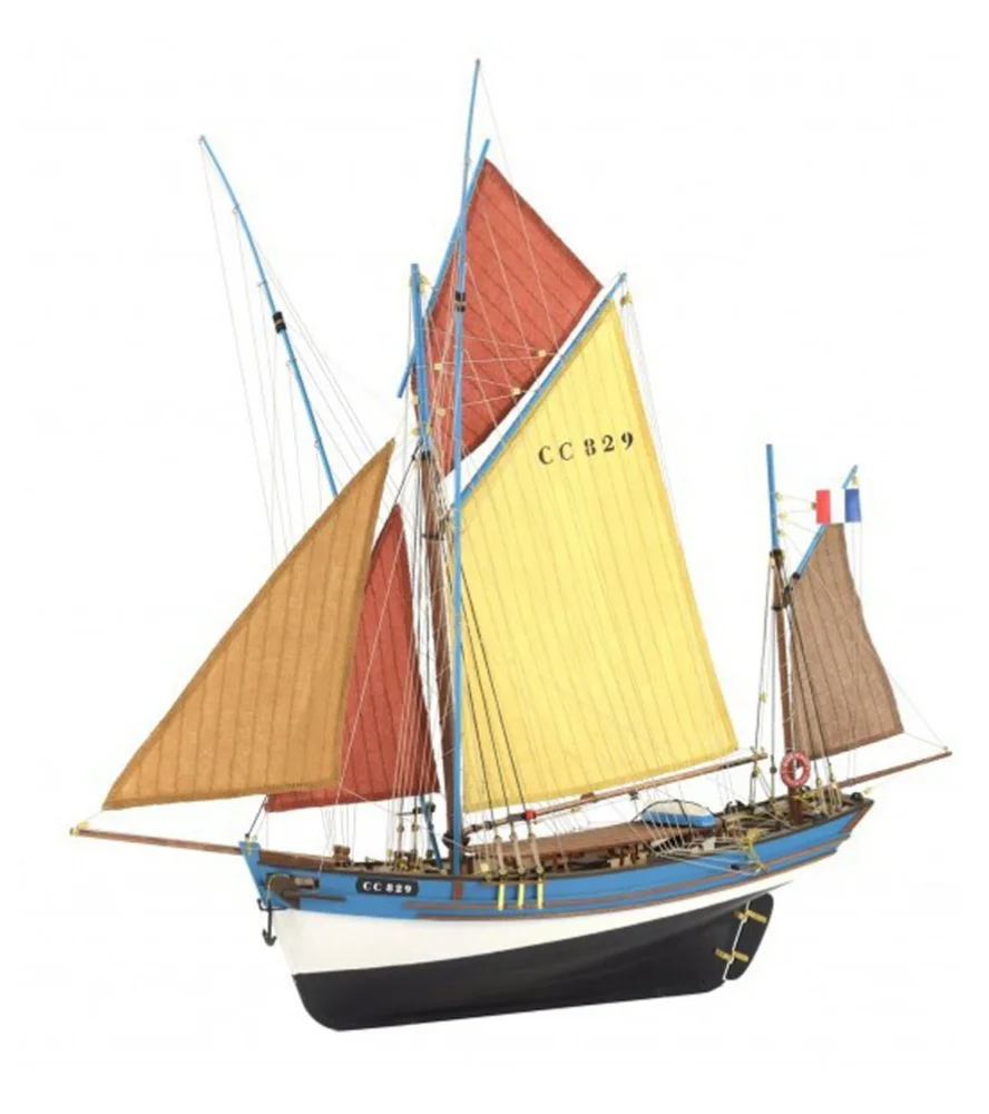 Skibsmodelsæt af Marie Jeanne, fransk fiskerbåd, en smuk træskibsmodel i skala 1:50. At bygge den nye trofaste kopi af denne tunbåd giver en venligere og lettere samleoplevelse for modelbyggere på mellemniveau. Modellen har forbedrede dele af høj kvalitet.