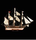 Gecompliceerde tuigage en zeilenVoorgenaaide katoenen zeilen op volledig gegoten masten en rondhouten voor realistische spanning, geoptimaliseerd voor eenvoudige en authentieke montage in deze nieuwe kit.