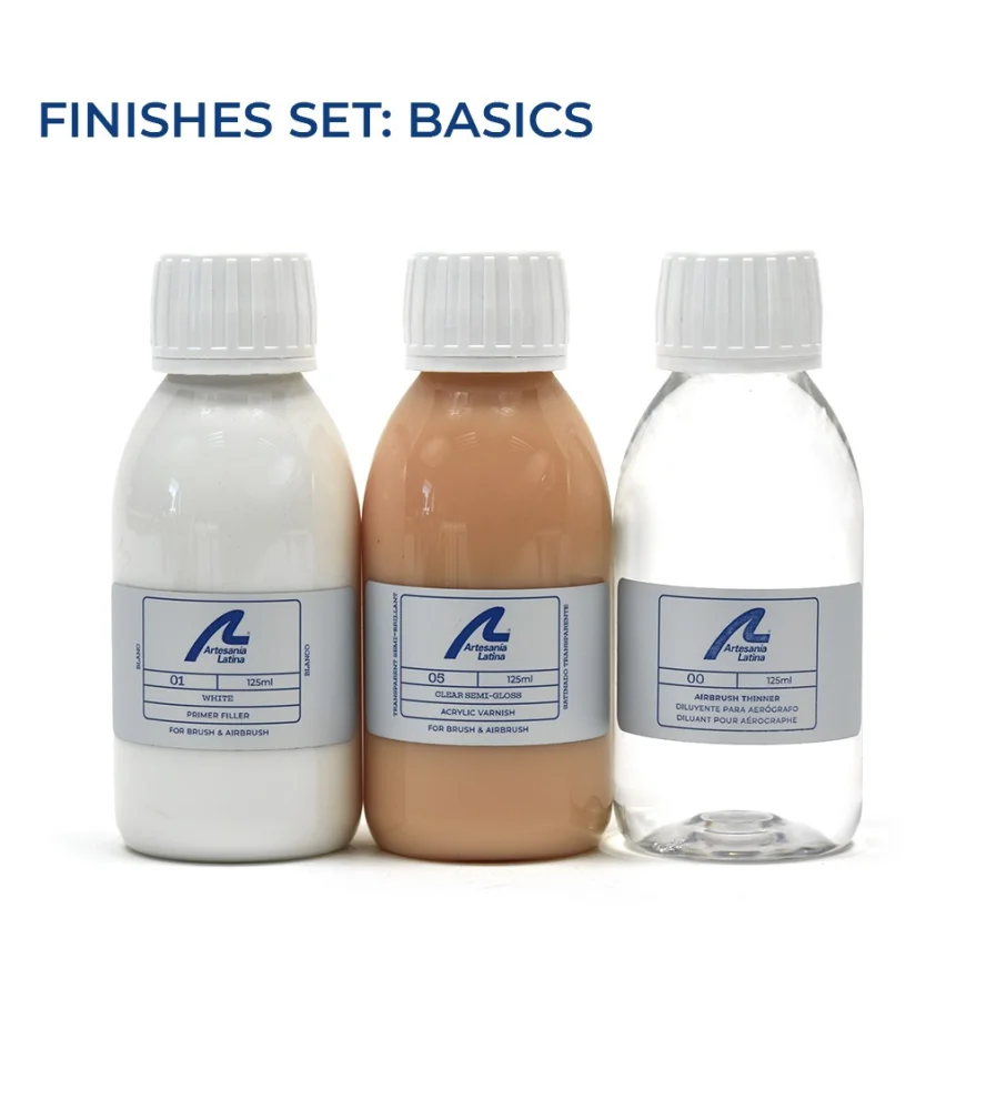Základní dokončovací sadu pro všechny druhy dřevěných modelů lze použít před, během i po jakémkoli procesu barvení modelů Artesania Latina, ať už se jedná o lodě, letadla nebo jiné druhy vozidel. Je dokonale vhodná pro použití s airbrushem, i když je lze použít i se štětcem.
