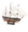 Saml din træmodel i skala 1:84 af HMS Victorys anatomi, vores ekstraordinære model af det engelske linjeskib fra det 18. og 19. århundrede. Dens konstruktionssystem med falsk køl og spanter bringer samlingen af miniaturen tættere på konstruktionen af det rigtige skib. Når det er bygget, måler det 1.202 mm i længden, 470 mm i bredden og 805 mm i højden - 875 mm med bunden.