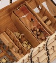 Denne anatomi giver dig mulighed for, mens du samler modellen, at undersøge skibets konstruktion og struktur i dybden samt den meget høje detaljeringsgrad. Modelsættet indeholder 10.000 dele af laserskåret plade med høj præcision, hårdt træ, messing og støbejern. Samt kobberforing til skroget, bomuldssejl, der er syet og klar til at blive sat på, og en træbearbejdningsbase. For ikke at glemme den smukke methacrylatbase med navnet i guld til at vise modellen, når den er færdig.