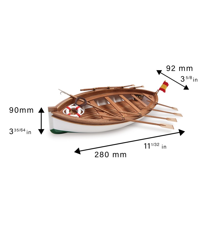 Modellbausatz für den Bau des Holzmodells desRettungsbootes des spanischen Schulschiffes Juan Sebastián Elcano ( 22260). Dieses Modell des Bootes im Maßstab 1:35 richtet sich an Modellbauanfänger. Im fertigen Zustand ist das Modell 280 mm lang, 90 mm hoch und 92 mm breit.