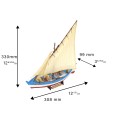 Entdecken Sie das Holzmodell der La Provençale aus dem Jahr 2023, ein traditionelles Fischerboot der Côte d'Azur. Dieses Boot, das dank seiner beiden lateinischen Segel eine typisch mediterrane Linie aufweist, wurde früher aus den Resten des Holzes hergestellt, das für den Bau größerer Fischerboote verwendet wurde.