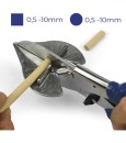 Er ist aus hochwertigem Metall gefertigt und misst 22 cm in der Länge und 5,5 cm in der Breite. Der Cutter ermöglicht eine Öffnung von 4,7 cm. Mit diesem Werkzeug lassen sich Materialien wie Holz, PVC und Gummi schneiden. Es schneidet z. B. Holzleisten zwischen 0,5 und 10 mm sowie runde Holzstäbe zwischen 0,5 und 10 mm. Zwei Klingen im Lieferumfang enthalten.