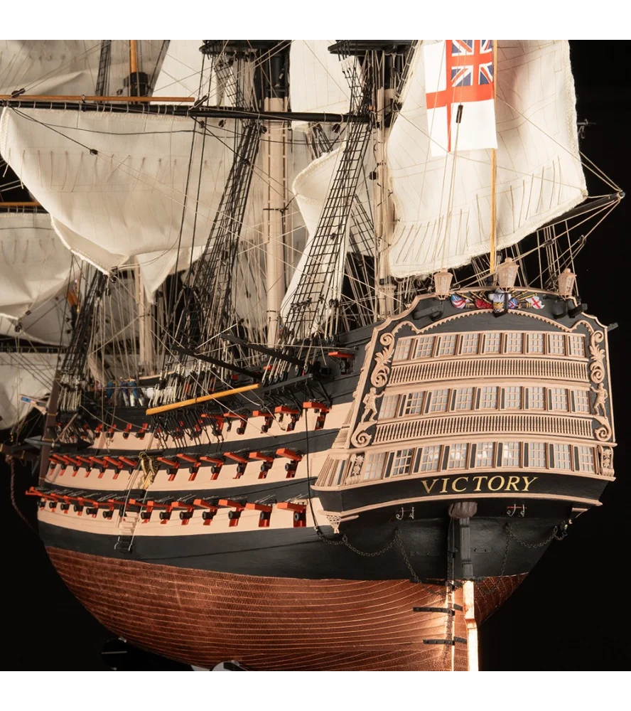 Die neue Anatomie-Version der HMS Victory, des legendären britischen Linienschiffs aus dem 18. und 19. Jahrhundert, dem Flaggschiff von Lord Nelson und dem berühmtesten Schiff der Seefahrt, ist ein beeindruckender und majestätischer Schiffsmodellbausatz aus Holz für erfahrene Modellbauer. Das Modell ist ein originalgetreuer Nachbau des Schiffes, wie es in der Schlacht von Trafalgar kämpfte, und enthält alle Details auf allen Decks, die durch die offene rechte Seite des Rumpfes sichtbar sind. Dieses Modell ist offiziell lizenziert durch das Britischen Nationalmuseum der Königlichen Marine.