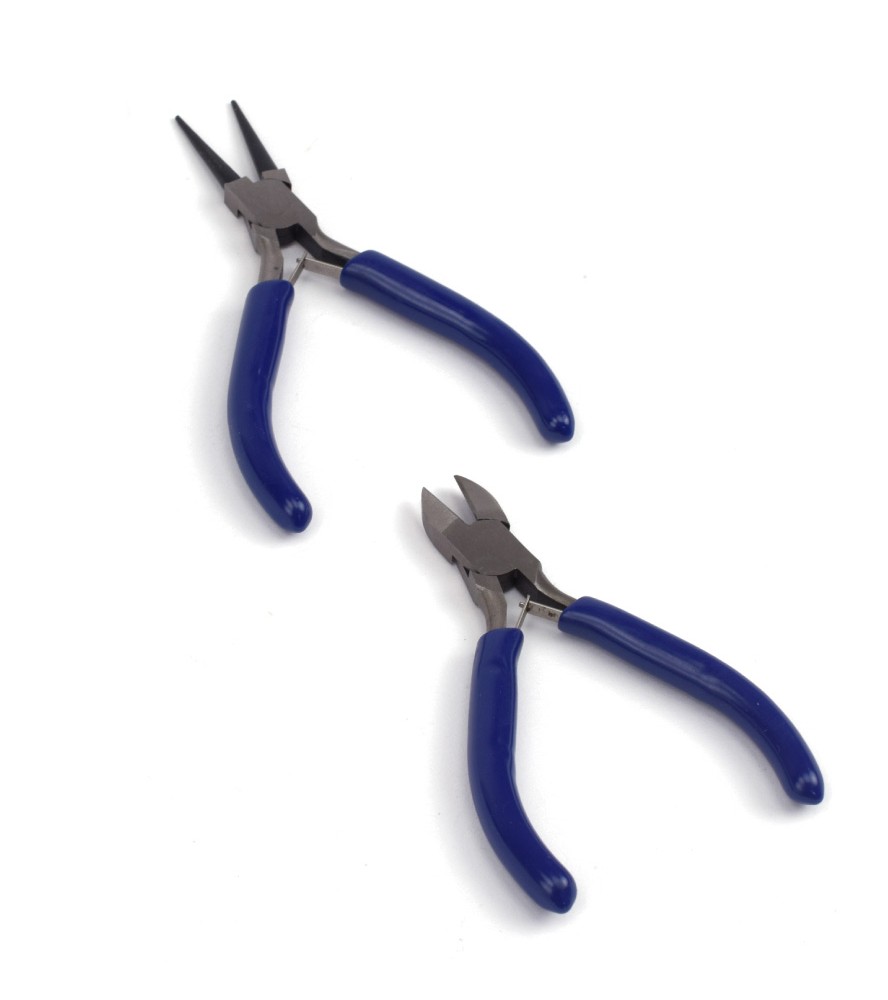 Set of two pliers, one cutting pliers and one conical grip pliers .