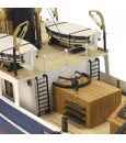In addition, for those who love challenges, the boat is also prepared to include a smoke generation system. It will give your model even more realism -the system is not included in the kit-. The modeller who wants can also attach a servomotor that rotates the rudder blade -not included-.