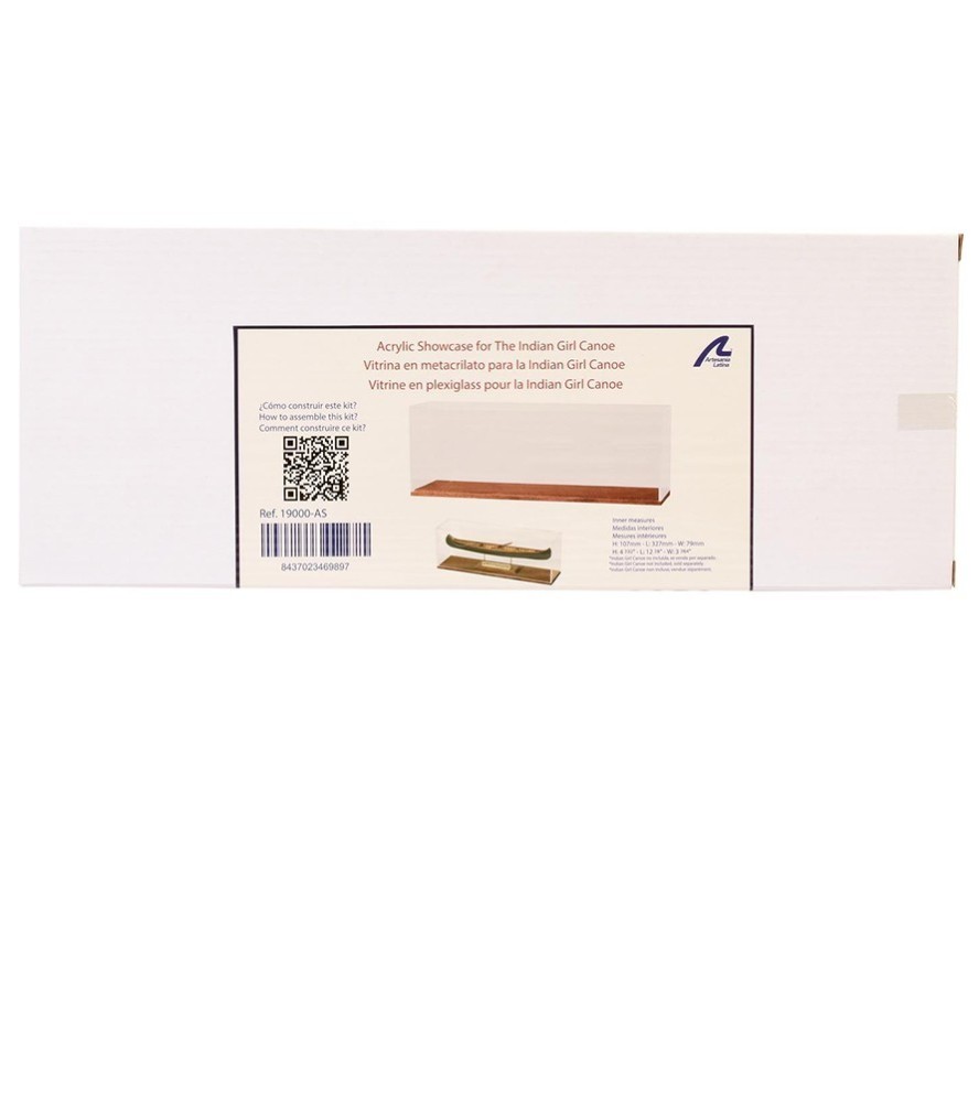 Protect your wooden model of the American The Indian Girl Canoe (19000at a 1:16 scale and display it like the museum piece that it is. The 3 mm thick methacrylate showcase with a wooden exhibition base by Artesanía Latina is the best solution. Its exterior measurements are 12.87'' (327 mm) in length, 3.11'' (79 mm) in depth and 4.21'' (107 mm) in height. Easy assembly for the modeller. Your model will look beautiful!