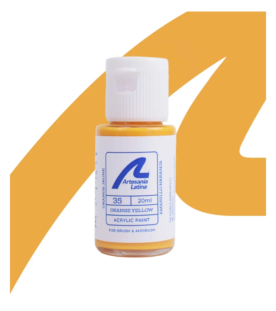 Yellow-orange acrylic paint is ideal for painting model kits Artesanía Latina as well as for all your DIY and craft projects. Suitable for both airbrush and brush painting, it can be diluted with alcohol or a less corrosive, less toxic thinner, guaranteeing an even texture without excessive agitation.