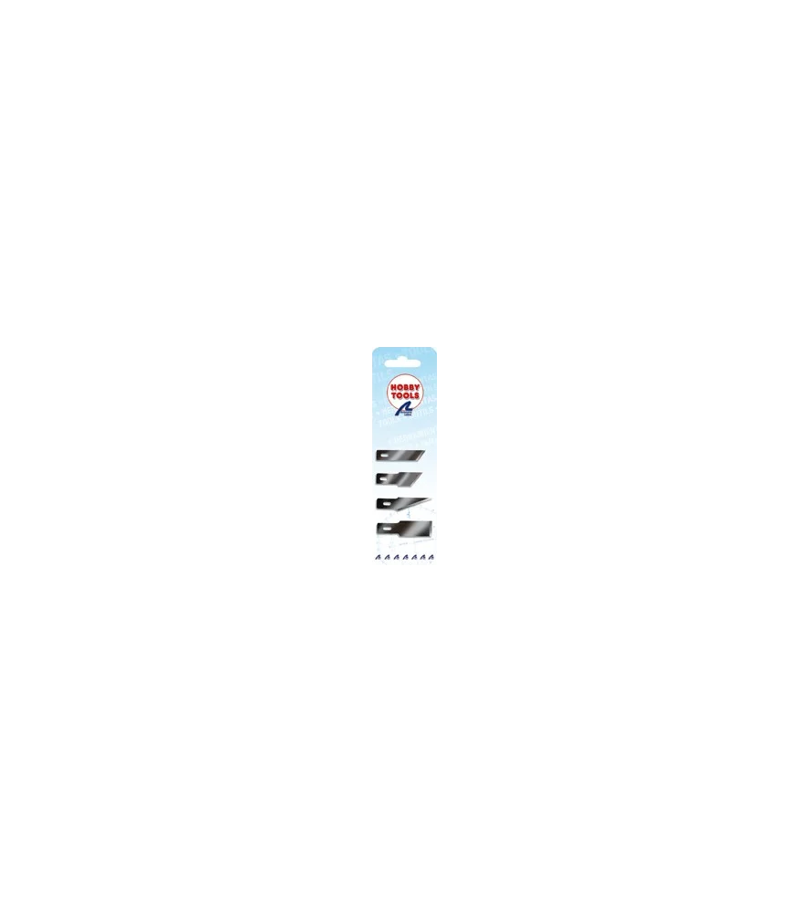 Descubra nuestro blíster con 4 cuchillas de recambio para Cúter Nº5. De fácil inserción en su correspondiente cúter, bien sea de tipo bisturí o con mango ergonómico más grande, las formas distintas de las cuatro cuchillas permiten realizar diversos y numerosos tipos de incisiones en los procesos de construcción de maquetas y de otras manualidades. Con estas herramientas de modelismo y de otras aficiones manuales, puede hacer cortes con precisión y comodidad en materiales como papel, cartón, plástico y madera. Son indispensables en su taller de modelismo o de manualidades.