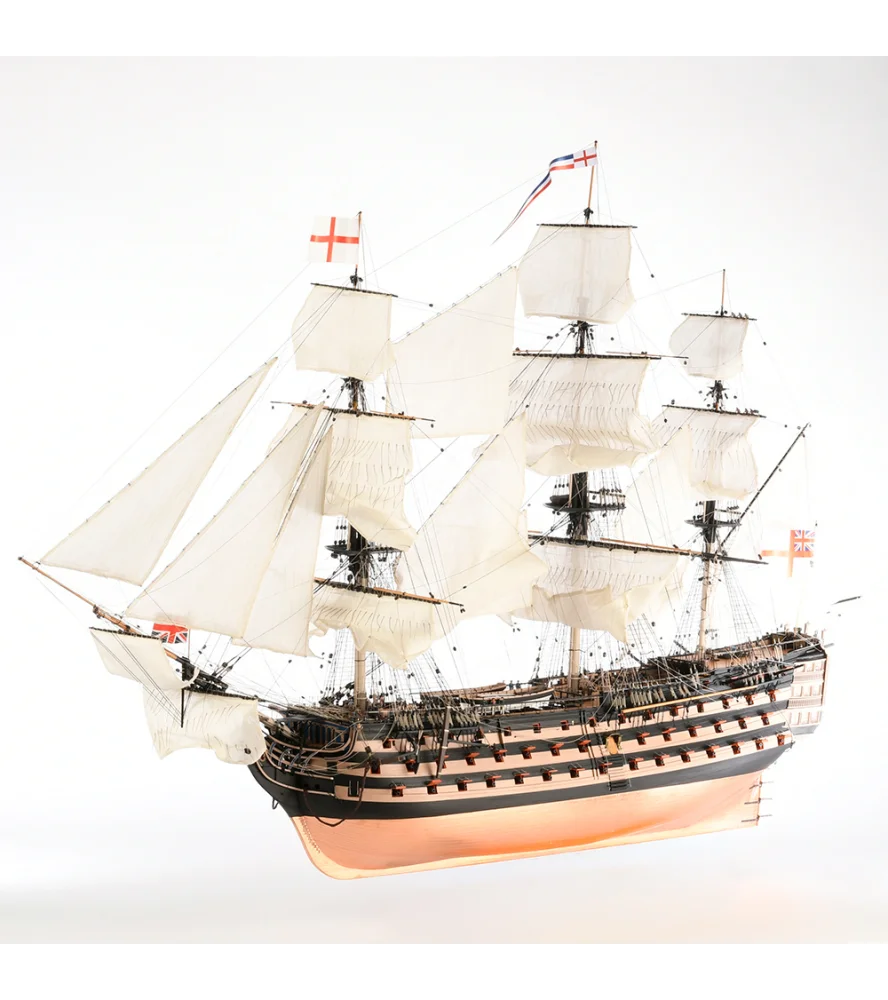 Monte su modelo a escala 1:84 en madera del HMS Victory, nuestra extraordinaria maqueta del navío de línea inglés de los s. XVIII y XIX. Su sistema de construcción mediante falsa quilla y cuadernas acerca el montaje de la miniatura a la construcción del buque real. Una vez construida, mide 475/16'' (1.202 mm) largo, 181/2'' (470 mm) ancho y 3111/16'' (805 mm) alto.