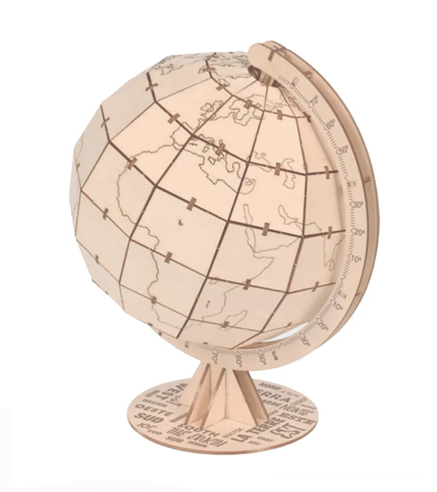 Maqueta en madera de este obsequio vintage perteneciente a la colección de miniaturas de Art&Wood. Monte este bello globo terráqueo mientras se divierte ya que es fácil de ensamblar, como todos los modelos de la colección Art&Wood, que además utiliza materiales ecosostenibles. ¡Decórela a su gusto!