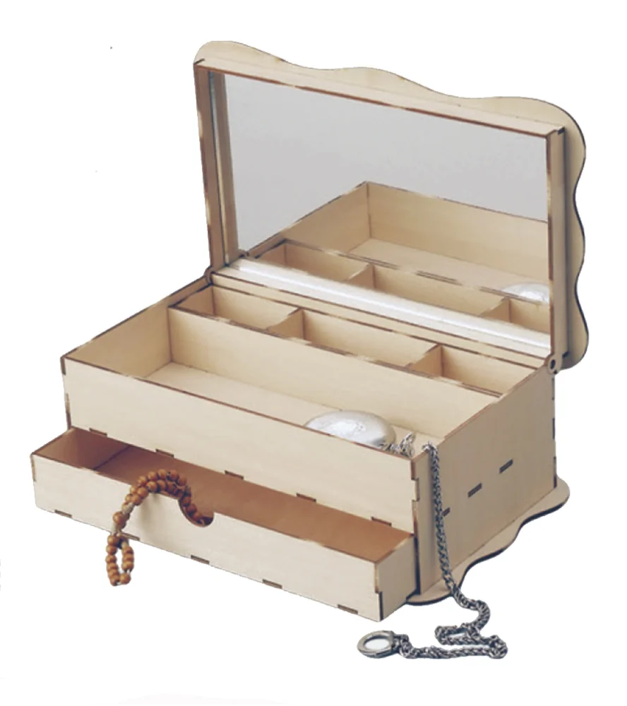 Maqueta Vintage en Madera: Joyero con Espejo y Cajón Secreto
