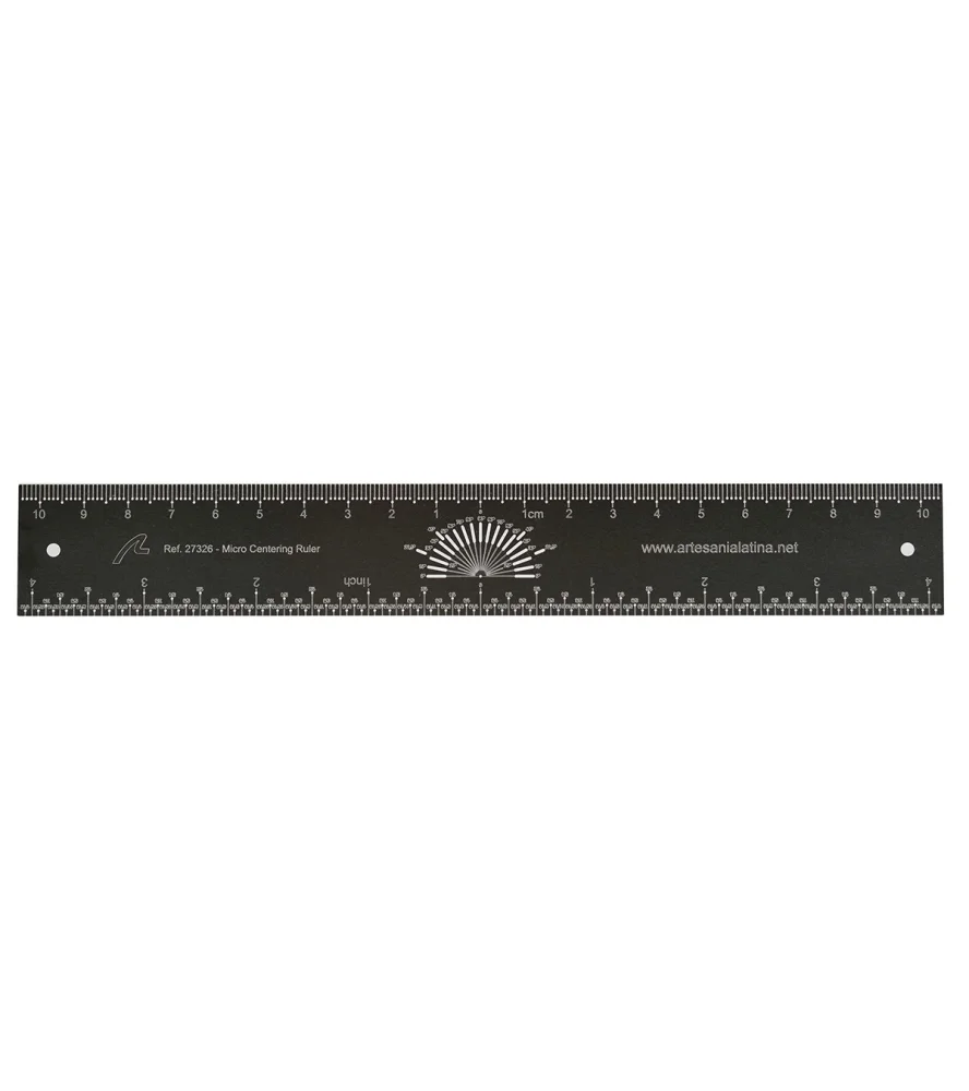 Un normale righello ha lo 0 a un'estremità, il righello di centratura Micro pone lo 0 al centro e la numerazione aumenta verso entrambi i lati. Includono misure metriche su un lato e imperiali sull'altro.