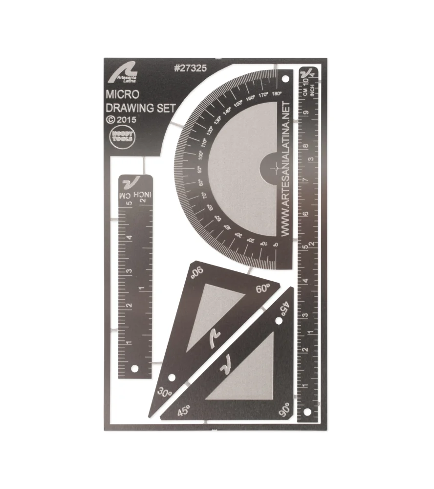 De Micro Linialenset, behorend tot de Micro Tools Collectie, is een bondgenoot in elk modelbouwproject. Gemaakt van hoogwaardig roestvrij staal, ontworpen door en voor modelbouwers, zijn de linialen, vierkanten en gradenbogen van deze set erg handig bij het bouwen van je modellen.