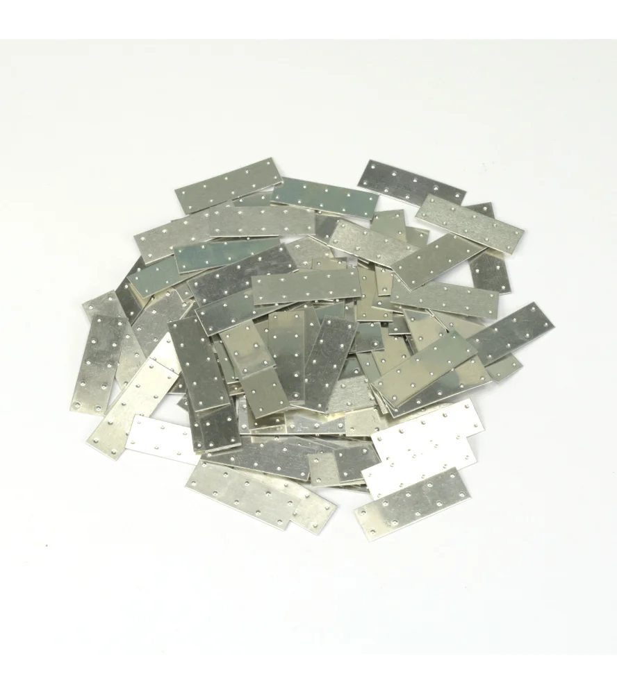 Modelbouwaccessoires zijn essentieel wanneer je een model versiert of helemaal opnieuw bouwt. Ze zijn ook essentieel in geval van verlies of breuk van een onderdeel tijdens het assemblageproces. Plaatwerk is een van de meest gevraagde accessoires omdat het een fundamenteel onderdeel is, indien gewenst, van de rompbekleding van oude houten modellen en ander handwerk. Dit is het geval met de aluminium plaat van 25 x 8 mm (80 stuks) van Artesanía Latina. Geef een antiek tintje aan elke miniatuur replica van een marine met deze platen!