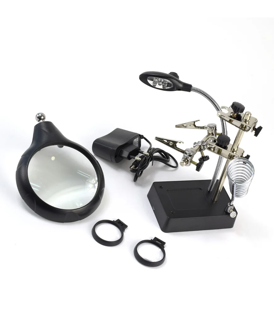 Trzecia ręka z 3 szkłami powiększającymi i 5 diodami LED