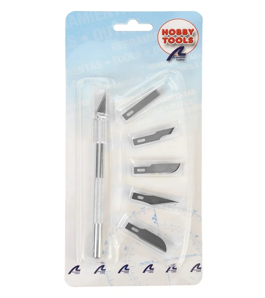 Nożyk typu skalpel nr 1 i jego sześć ostrzy tnących - pięć różnych - od Artesanía Latina jest niezbędnym narzędziem modelarskim w każdym szanującym się warsztacie modelarskim i rzemieślniczym. Pomaga wykonać dowolne cięcie w procesie budowy modeli w skali lub w zadaniach związanych z wieloma innymi hobby.