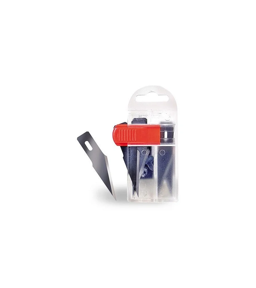O dispensador de segurança e as suas 10 lâminas de precisão para modelismo e outros passatempos servem como lâminas de reserva para o cortador n.º 5, para que possa mudá-las à medida que as suas necessidades de corte mudam ou que as lâminas se deterioram. É uma óptima ferramenta de modelação, pois permite guardar e retirar as lâminas de forma segura e organizada. Permite também evitar cortes quando não se está a utilizar as lâminas.