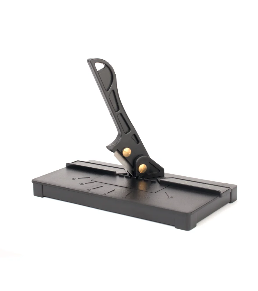 | Гильотина для резки с регулируемым углом от 45º до 90º. | Гильотина для резки с регулируемым углом от 45º до 90º. Она быстро и точно режет множество мягких материалов: дерево, пластик, пробку... Имеет индикацию метрических и имперских измерений для резки. В комплект входят резиновые ножки (на присосках) |