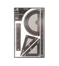 2 линейки (50 мм и 100 мм / 2 и 4''). 1 квадрат. 1 квадрат. 1 транспортир.