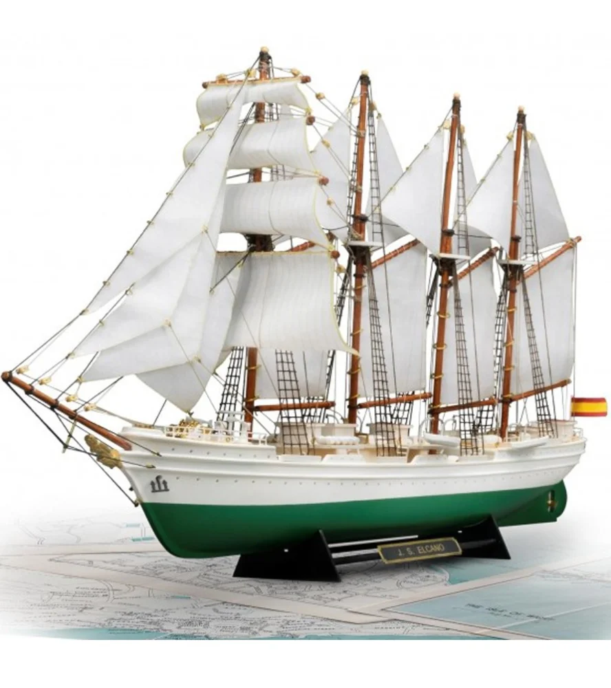 Познакомьтесь с набором для сборки деревянной и пластиковой модели испанского учебного судна Juan Sebastián Elcano / Chilean Esmeralda. Эта модель в масштабе 1:250 предназначена для начинающих моделистов.
