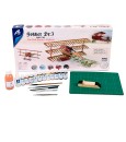 Кроме того, в комплект входит фантастический подарок-бонусфлакон циано (27620) и наш базовый набор инструментов для моделирования nº2 (27003N): круглая кисть и плоская кисть, резак, прямой прецизионный пинцет, шлифовальный брусок деревянный шлифовальный брусок и плоский напильник. Кроме того, 125 мл баночка прозрачный сатиновый лак (27605) y коврик для резки A4 (27644).